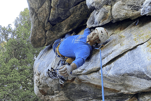 Precisou descer de rapel para recuperar uma bolsa presa na rocha.