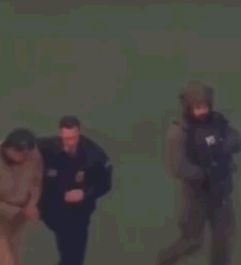 O ex-presidente da venezuela aparece escoltado por policiais armados, caminhando com dificuldade e usando um macacão bege, em uma área com forte presença militar.