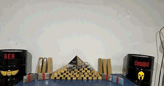 Durante buscas no interior do carro, os policiais localizaram 58 barras de substância esverdeada semelhante a maconha e quatro barras de substância análoga a skank, armazenadas no porta-malas e no assoalho do banco traseiro, além de um aparelho celular.